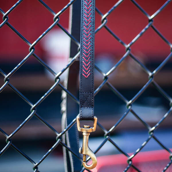 The Rawlings baseball stitch premium leather dog leash is crafted from genuine leather and antique brass hardware for superior quality. In addition, it features a unique baseball stitch design, making it the ultimate accessory for any baseball fan's favorite companion. Also, its leather construction and braided handle combine for a durable leash you can turn to year after year, and park after park. Take your dog out to the ballgame, or around town, in style with the Rawlings leather dog leash — order yours now!
